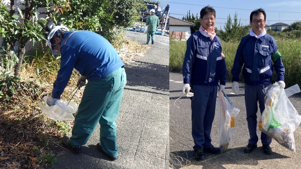 右)鹿島工場:近隣行政区一斉美化清掃へ参加
