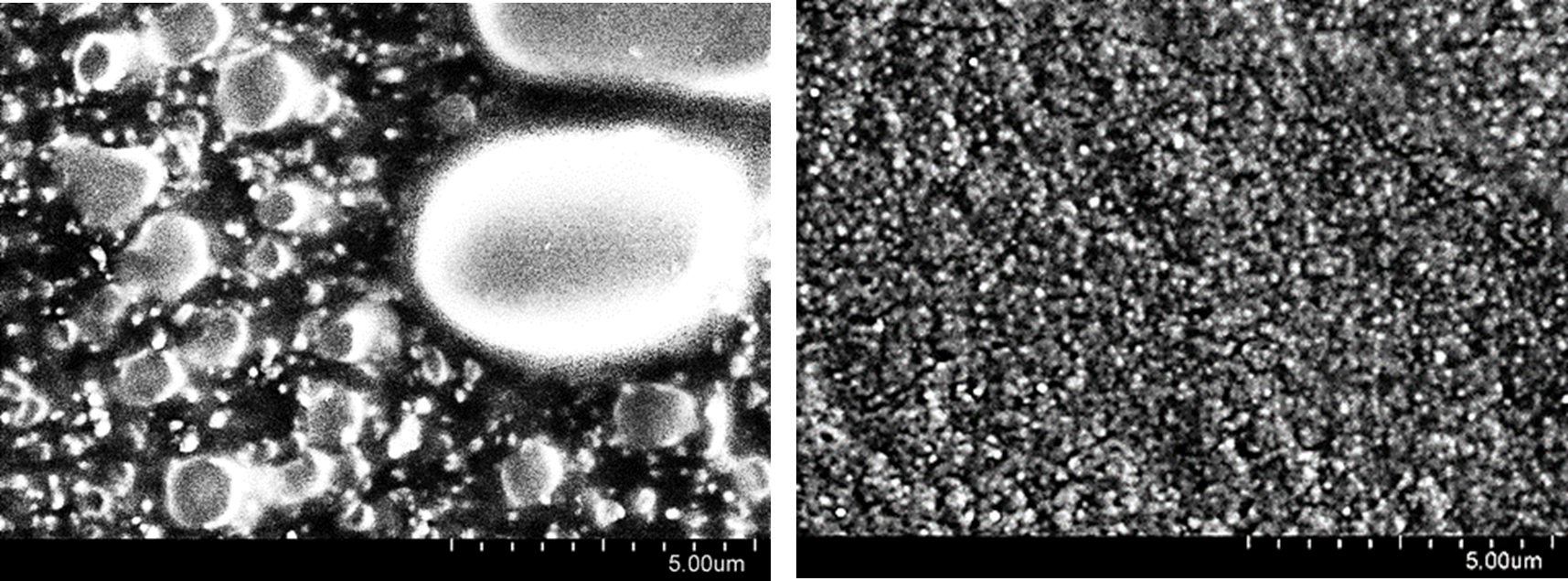 MAHを持たないEMAでは、PA6中に比較的大きなEMAのドメインが形成されていることが確認されます。一方、MAHを持つETでは、PA6の-NH2基との結合形成により、極めて微細に分散し、マトリックス樹脂であるPAに均一に混ざり合うことが可能です。このモルフォロジーの違いにより、物性と流動性のバランスに差が生じます。
