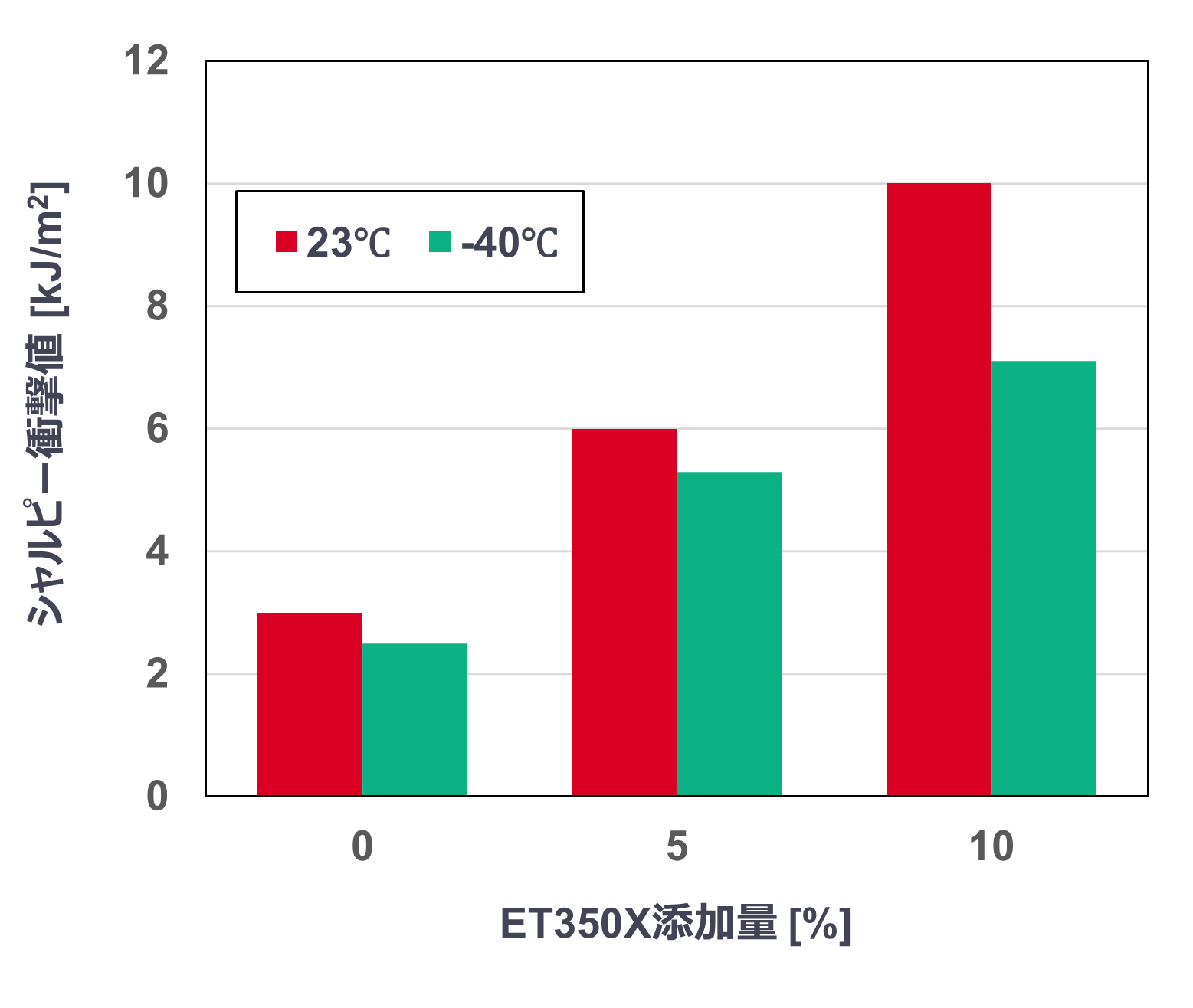 図2 PA6+ET350X配合による低温下での耐衝撃性改質
