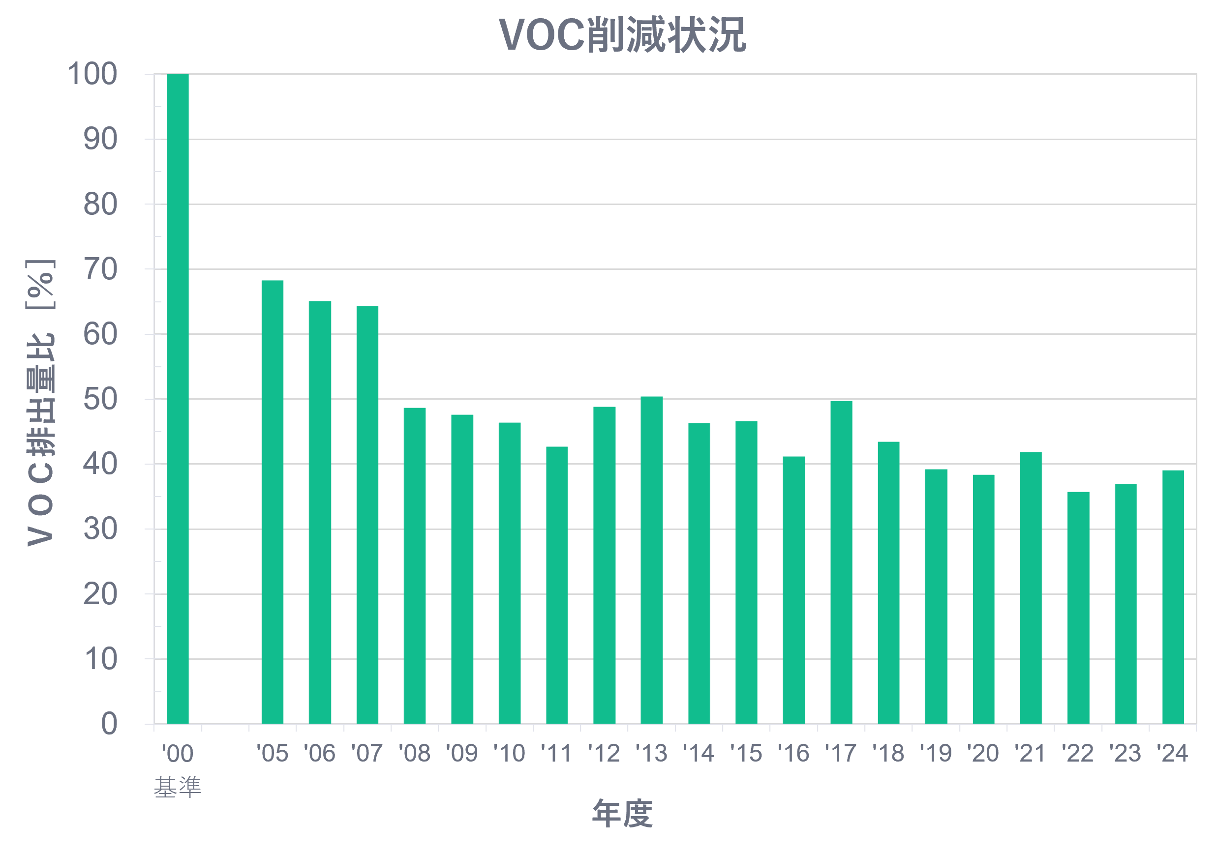 VOC(揮発性有機化合物)は光化学オキシダントや浮遊粒子状物質の発生起因物質の一つであるとして規制されています。